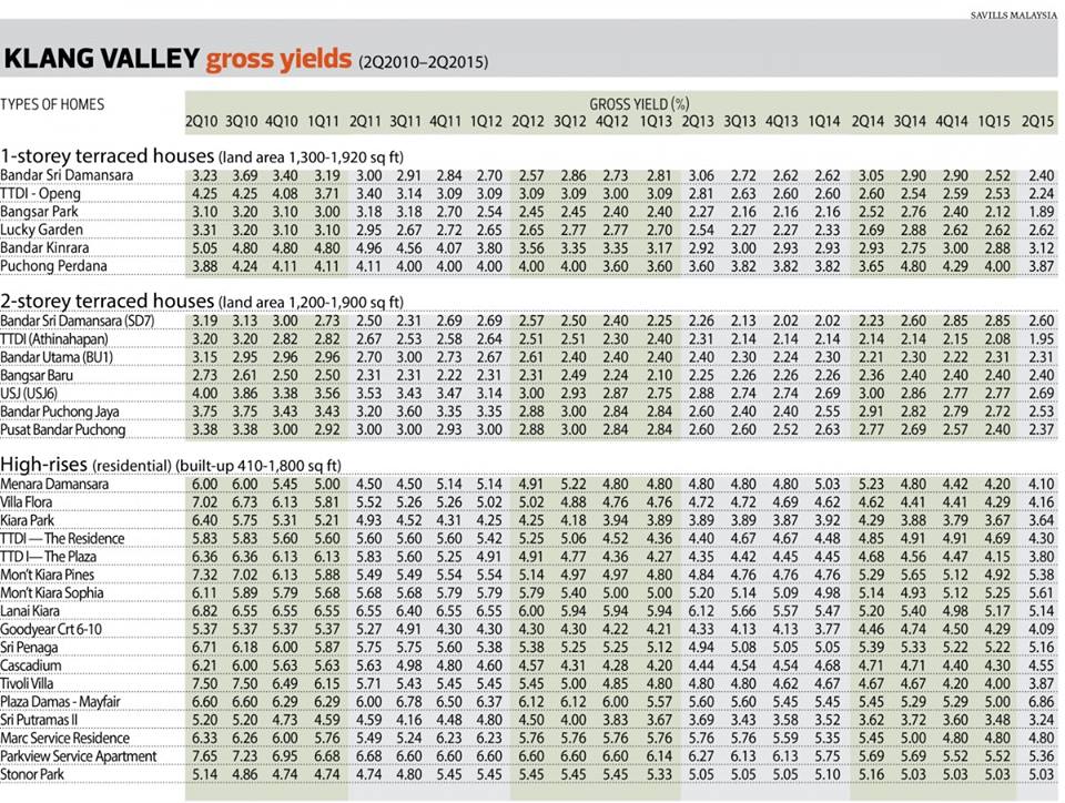 Rents were stable overall, with some areas enjoying some rental growth year on year (y-o-y) such as Bangsar Park and Taman Tun Dr Ismail (TTDI) Jalan Openg (1,760 sq ft), which up 5.5% and 4.7% respectively. However, Bandar Sri Damansara (1,300 sq ft) was the only area that saw a slight decline to RM1,300 per month in 2Q2015 from RM1,400 in 2Q2014.
