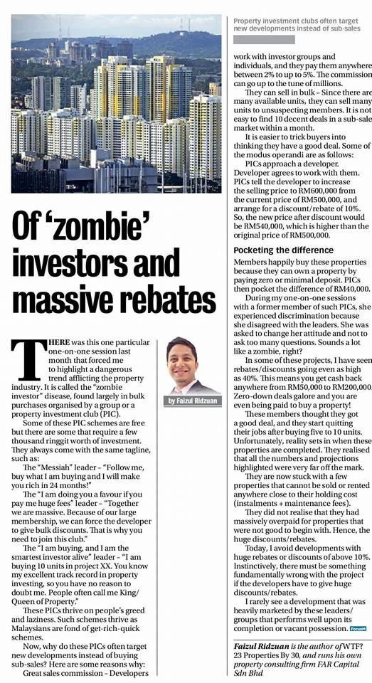 Zombie Investor Leave a Comment / By Admin Property Empire / 30/11/2015 A new kind of dieases in Property Industry. It’s called the “Zombie Investors” diease, found largely in bulk purchases organised by a group or a property investment club (“PIC”).